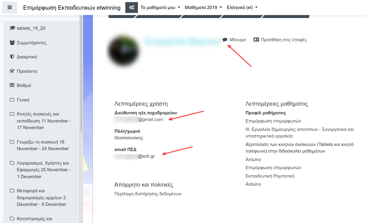 4. Στη σελίδα προφίλ του χρήστη μπορείτε να δείτε τη διεύθυνση ηλεκτρονικού ταχυδρομείου ή να στείλετε απευθείας μήνυμα μέσω της πλατφόρμας.