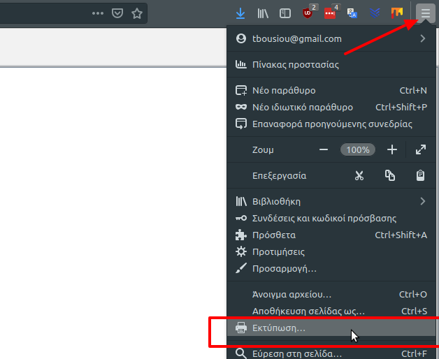 3 Χρησιμοποιήστε τη λειτουργία εκτύπωσης του Firefox και εκτυπώστε ή μετατρέψτε σε PDF όπως περιγράψαμε στο βήμα 3a προηγουμένως.